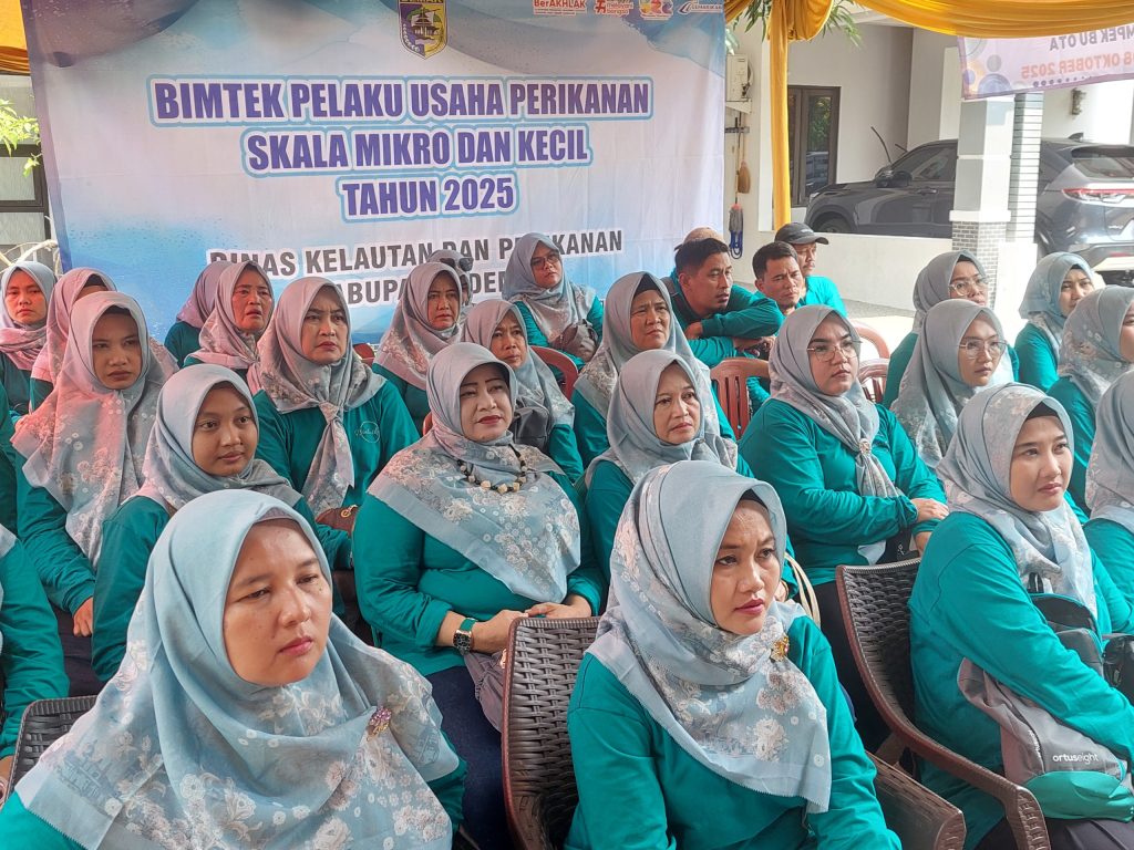 Tanggal 7 – 9 Oktober 2025 Dinas Kelautan dan Perikanan melalui Bidang Pengolahan dan Pemasaran Hasil Perikanan melaksanakan Bimbingan Teknis Pelaku Usaha Perikanan Skala Mikro dan Kecil. Bimbingan Teknis Pelaku Usaha Perikanan Skala Mikro dan Kecil diawali dengan adanya paparan dari Bapak Fatwi Zandos, S.Pt., M.Si. dan Ibu Lili Nus Chalimah, S.Pt. selaku narasumber dari Dinas Perikanan dan Peternakan Kabupaten Bogor, Jawa Barat. Dalam paparannya, beliau menjelaskan pengalaman Kabupaten Bogor dalam melakukan pembinaan terhadap pelaku usaha perikanan skala mikro dan kecil yang telah berhasil melalui peningkatan kualitas produk, inovasi, serta pemasaran digital. Beliau menekankan pentingnya pendampingan berkelanjutan dan kolaborasi antarinstansi, mulai dari dinas teknis, laboratorium pengujian, hingga lembaga sertifikasi mutu.