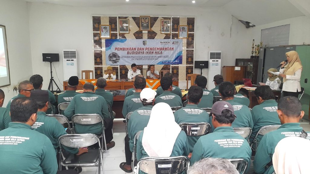 Rabu, 25 Februari 2026 Dinas Kelautan dan Perikanan Kabupaten Demak melalui Bidang Perikanan Budidaya mengadakan kegiatan pembinaan dan pengembangan budidaya Ikan Nila.