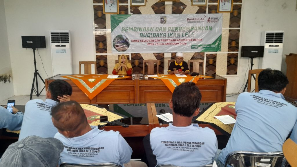Kamis, 26 Februari 2026 Dinas Kelautan dan Perikanan Kabupaten Demak melalui Bidang Perikanan Budidaya mengadakan kegiatan pembinaan dan pengembangan budidaya Ikan Lele.